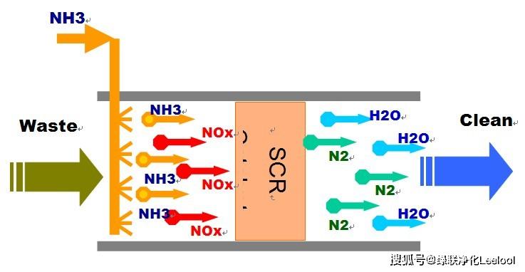 采用SCR,尾氣穿過在涂覆釩基或者分子篩還原催化劑,在一定反應溫度和噴射尿素溶液的情況下,促使有害氣體進行適當的化學反應,例:8NH3+6NO2→7N2+12H2O